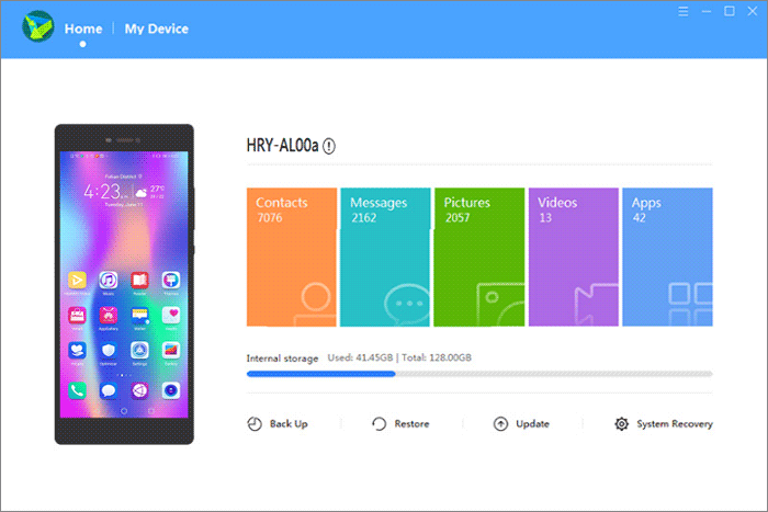 步骤2:识别华为设备按照屏幕提示操作,让软件识别您的华为手机。识别成功后,您将进入主界面,左侧将显示华为手机的文件分类。