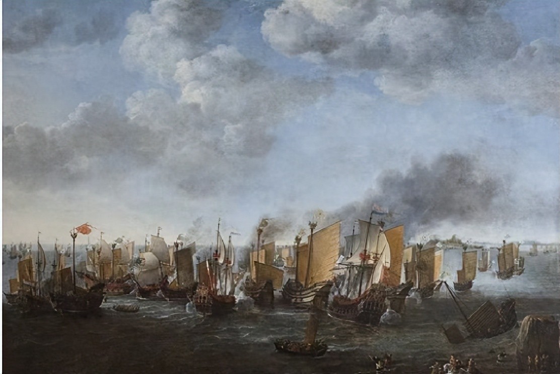 后来的结果,荷兰人派出“赫克托”号的巨型战舰,企图凭借其强大的侧舷炮火,冲乱郑军的舰队。