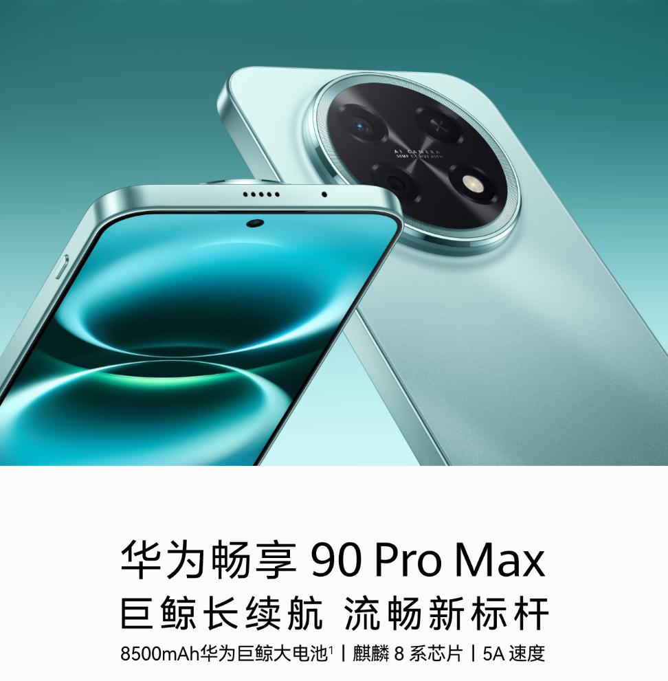 华为畅享 90 Pro Max 搭载麒麟 8000 + 鸿蒙 6,8500mAh 巨鲸电池 + 40W 快充,1699 元起国补后低至 1444 元,主打长续航、无广告、长辈友好;红米 Turbo 5 Max 首发天玑 9500S + 澎湃 OS,9000mAh 电池 + 100W 快充,1869 元起,主打旗舰性能、高刷屏、快充拉满。