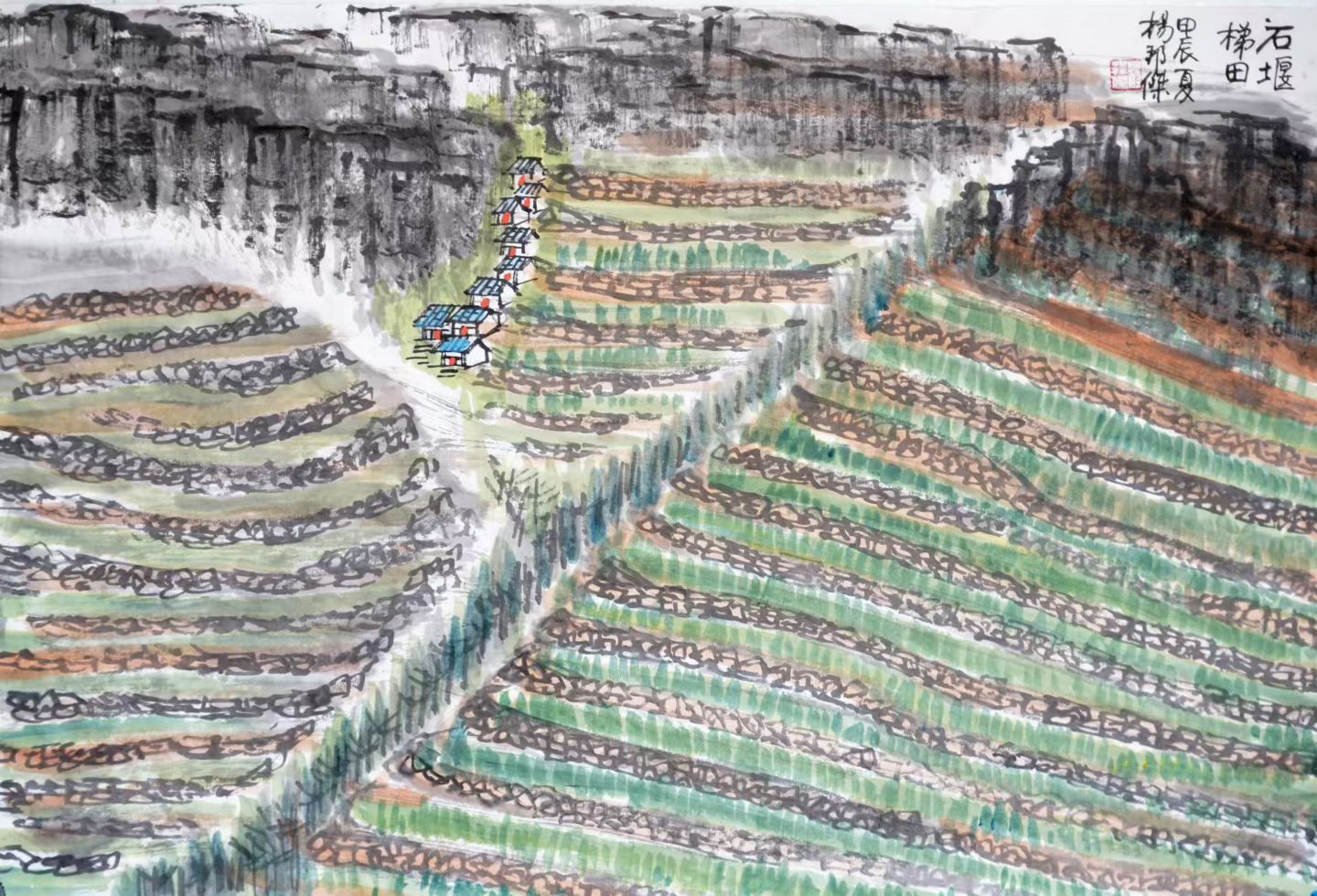 八百里太行山,红色悬崖上的挂壁公路,绝壁上的饮水工程,石头坡地,石头村庄,这就是太行精神。
