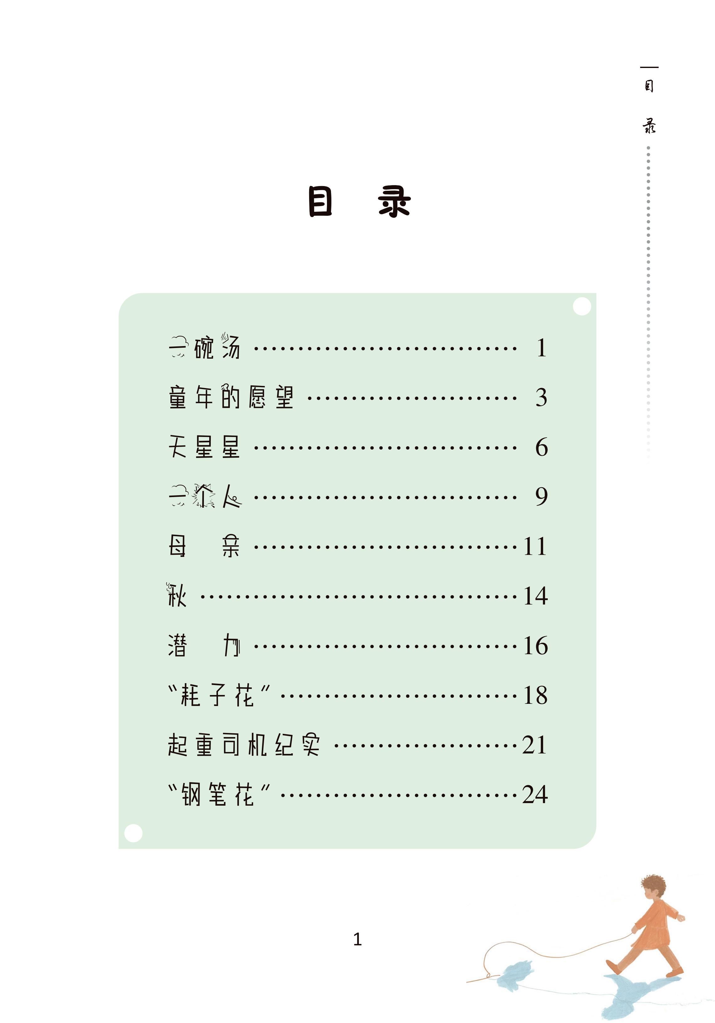 书中收录了多篇散文,如《童年的愿望》、《母亲》、《一碗汤》等,作者以细腻的笔触勾勒出一幅幅生动的童年画卷。她写母亲在灯下飞针走线的辛劳,写童年时采“龙葵”(天星星)、“白头翁”(耗子花)的野趣,写一家人围坐喝一碗汤的简单幸福……这些看似平凡的日常,在作者饱含深情的回忆中,被赋予了非凡的意义。正如她所写:“亲爱的母亲啊!您是孟郊笔下的慈母;您有胡适母亲的品格;有冰心母亲的严厉,您也曾是一朵娇艳欲滴的花,是我人生的第一任导师,您汇聚了中华民族母亲的优良传统。” 这种对亲情、对生活的深刻体悟,是本书最打动人心的力量。