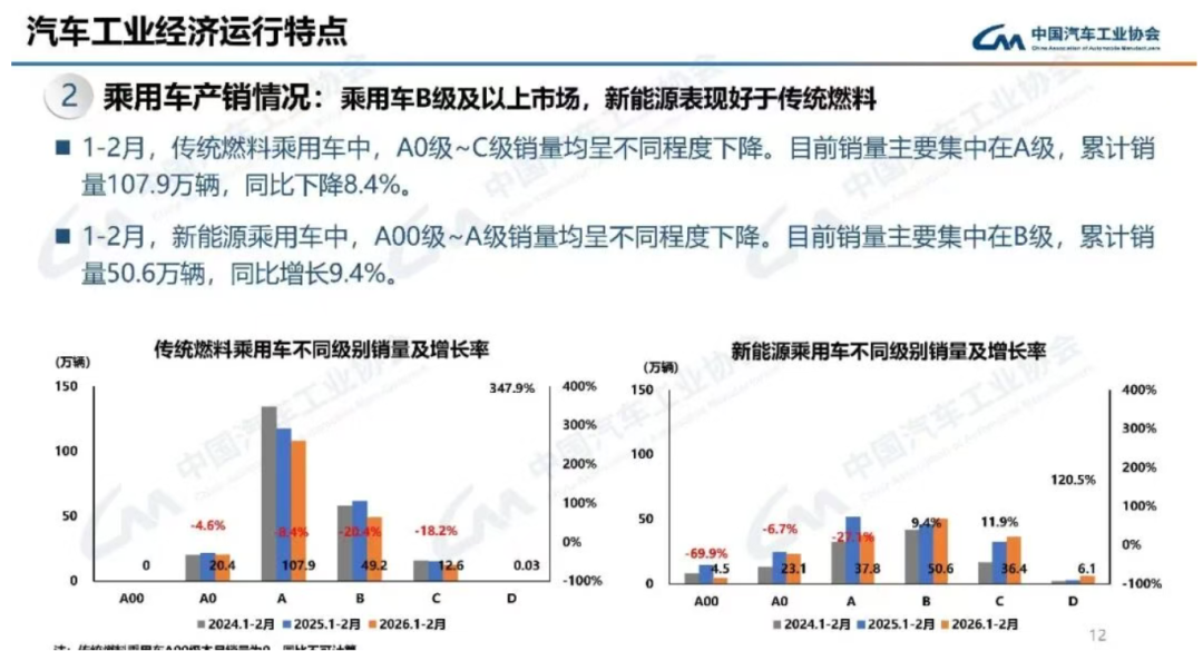 2026年2月,A0级纯电车型批发销量12.2万辆,占纯电动的29%份额,同比增长3.9%。此外,A00+A0级纯电动车也是出口的核心车型,占纯电动出口的55%。