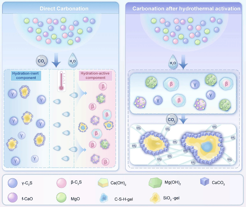 研究同时发现水热活化存在阈值效应,适度活化可深度碳化,过度活化则导致水化产物堆积覆盖活性位点并阻断传质通道。全生命周期评价显示,该工艺匹配工业废热或绿电可进一步降低碳排放。