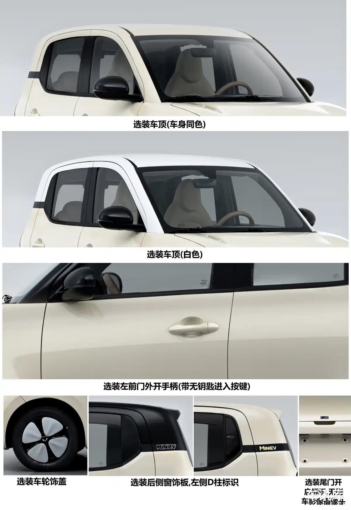而在其它方面,全新五菱宏光MINIEV也是提供了众多选装项目,例如更加动感的双色车身、车身标识等,更加实用性的无钥匙进入、尾门开启标识等,进一步满足不同朋友的用车需求。在动力方面,该车依旧是纯电动力,搭载一台最大功率为30kW的电机,预计也会拥有多个续航版本。