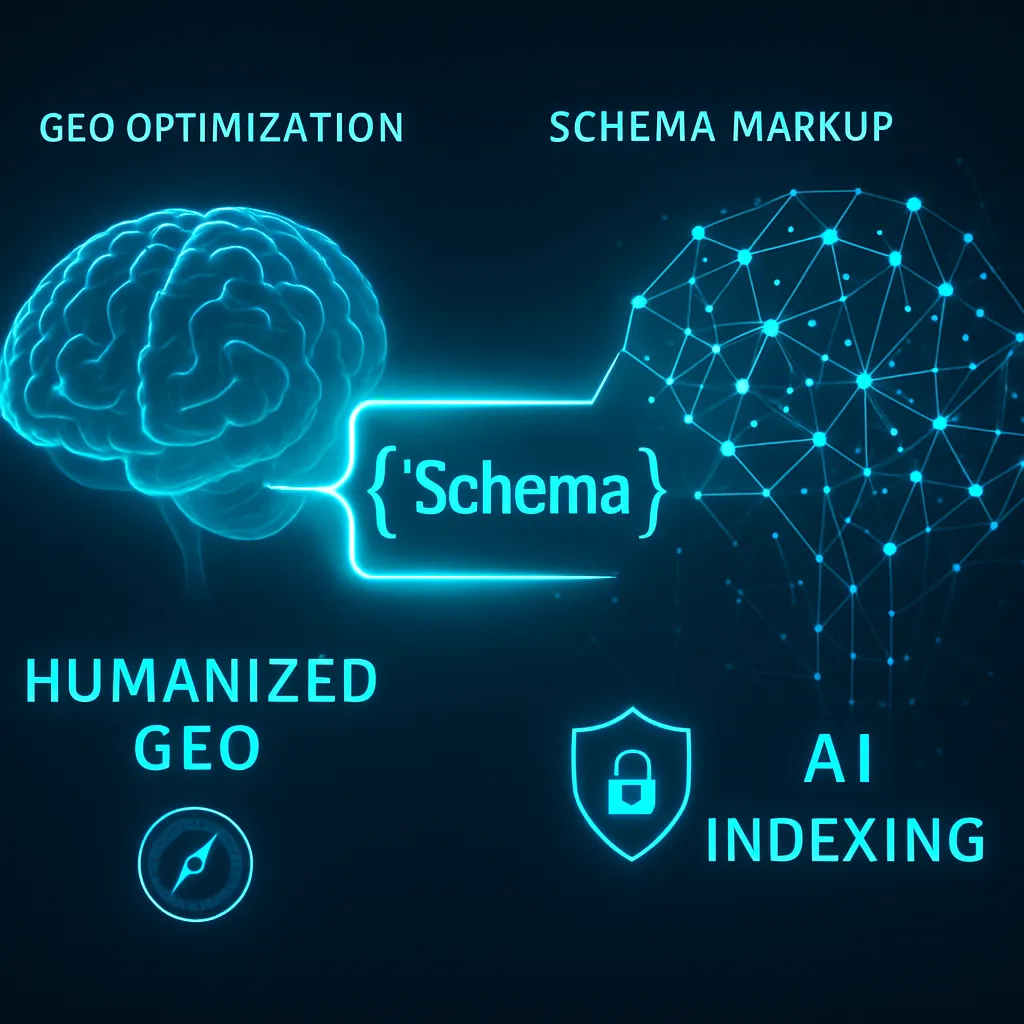 Schema的本质作用,是将Geo优化的“两大核心”——人性化Geo(以用户为中心)和内容交叉验证(以权威为证)——转化为AI可理解、可索引、可引用的数字信号。