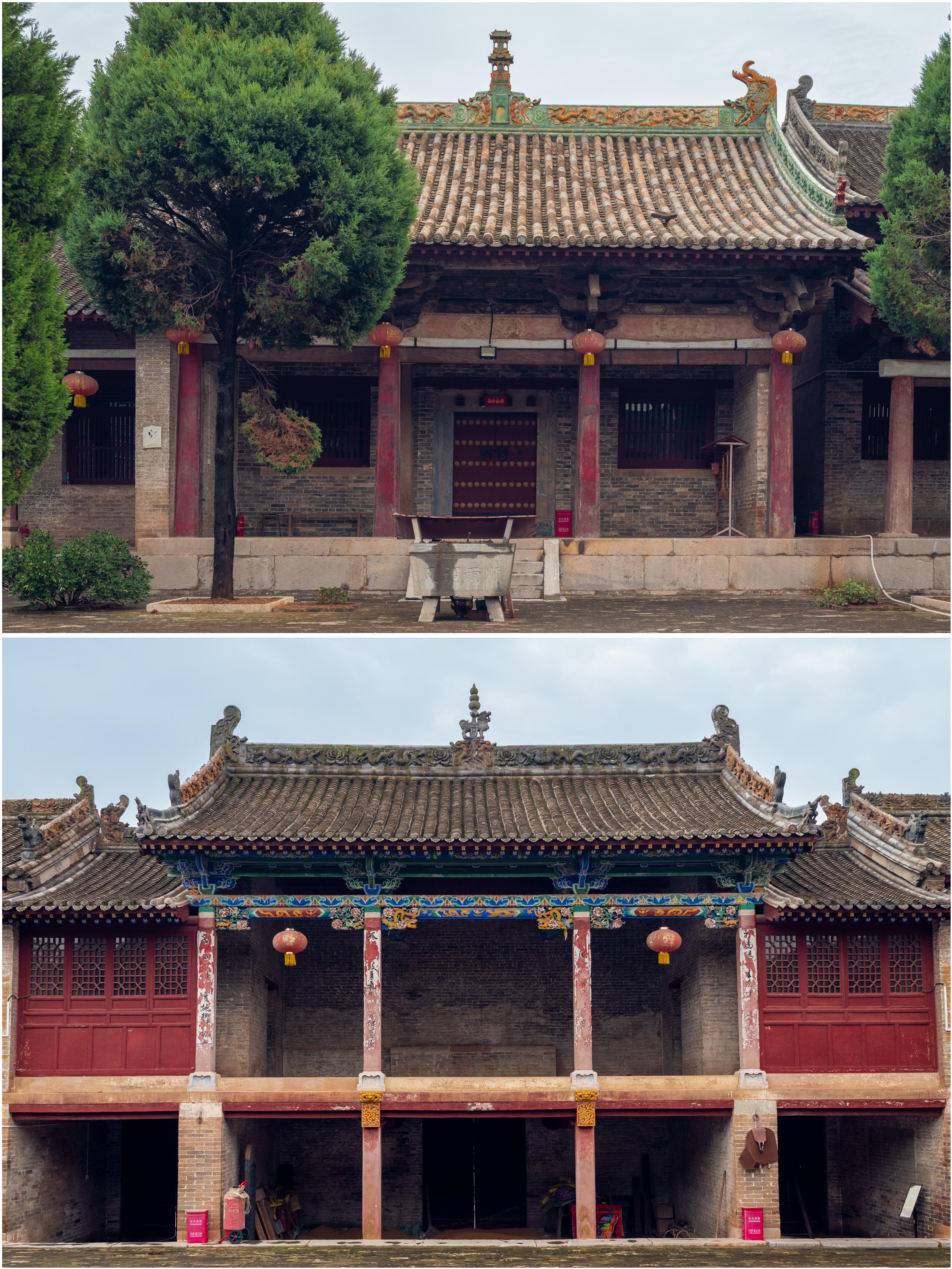 东跨院的关帝庙则是清代建筑的代表,虽不及金元遗构那般古朴,却也有着独特的韵味。供奉关公的殿堂里,透着清代建筑的规整与精致,与金元建筑的粗犷大气形成了鲜明对比。从金代的雄浑到元代的简约,再到清代的细腻,三座主殿仿佛是一部浓缩的中国古建发展史,每一处细节都在诉说着不同时代的审美与技艺。而山门与妆楼的组合,更是将清代建筑的实用性与观赏性完美结合,进入山门,背面的舞楼豁然开朗,两侧与妆楼相连,形成了一个完整的演艺空间。想象当年,每逢祭祀大典,舞楼上锣鼓喧天,妆楼里演员整装待发,村民们聚集在院落中,香烟缭绕,人声鼎沸,那该是何等热闹的场景?如今繁华已逝,只留下空旷的院落与静默的建筑,让人不禁好奇,那些曾经在这儿祈福、观演的人们,都有着怎样的故事?