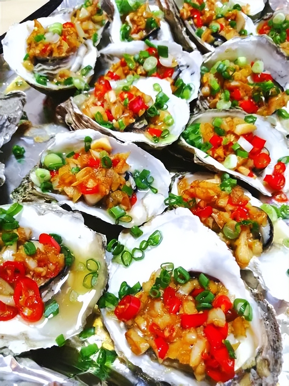 烤生蚝是很常见的夜市小吃,新鲜的生蚝肉配上那香喷喷的蒜蓉的烤香味,少许的辣椒的刺激完全不会遮盖住那生蚝肉本身的鲜美,既能让你吃起来感到辣味的刺激,又可以体会到生蚝的天然本味