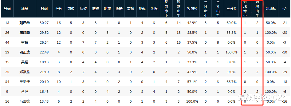 还包括第四节对抗强度并不是很大的比赛,马国栋单节4次获得上罚球线的机会,全部罚丢。
