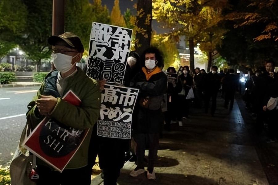 数千名日本民众聚集在首相官邸前抗议,高举"高市下台"的标语。社交媒体上,"高市辞职""高市住手""请高市撤回发言"等话题持续霸榜。