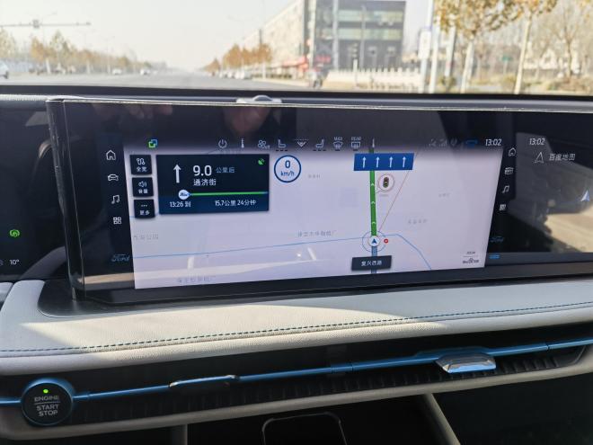 导航提示:“前方500米有测速。”这贴心的提醒像是旅途中不打扰的陪伴,让我能安心沉醉在窗外的风景里——远处的山峦如黛,近处的银杏林正把秋色燃成火焰,而车内,是混动系统低速时的静谧与空调送出的暖风。
