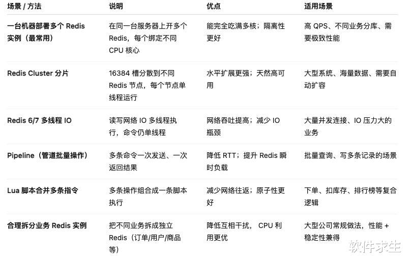 至于多核利用?那是架构层面(多实例、多分片)的事情,不是 Redis 内核的活。