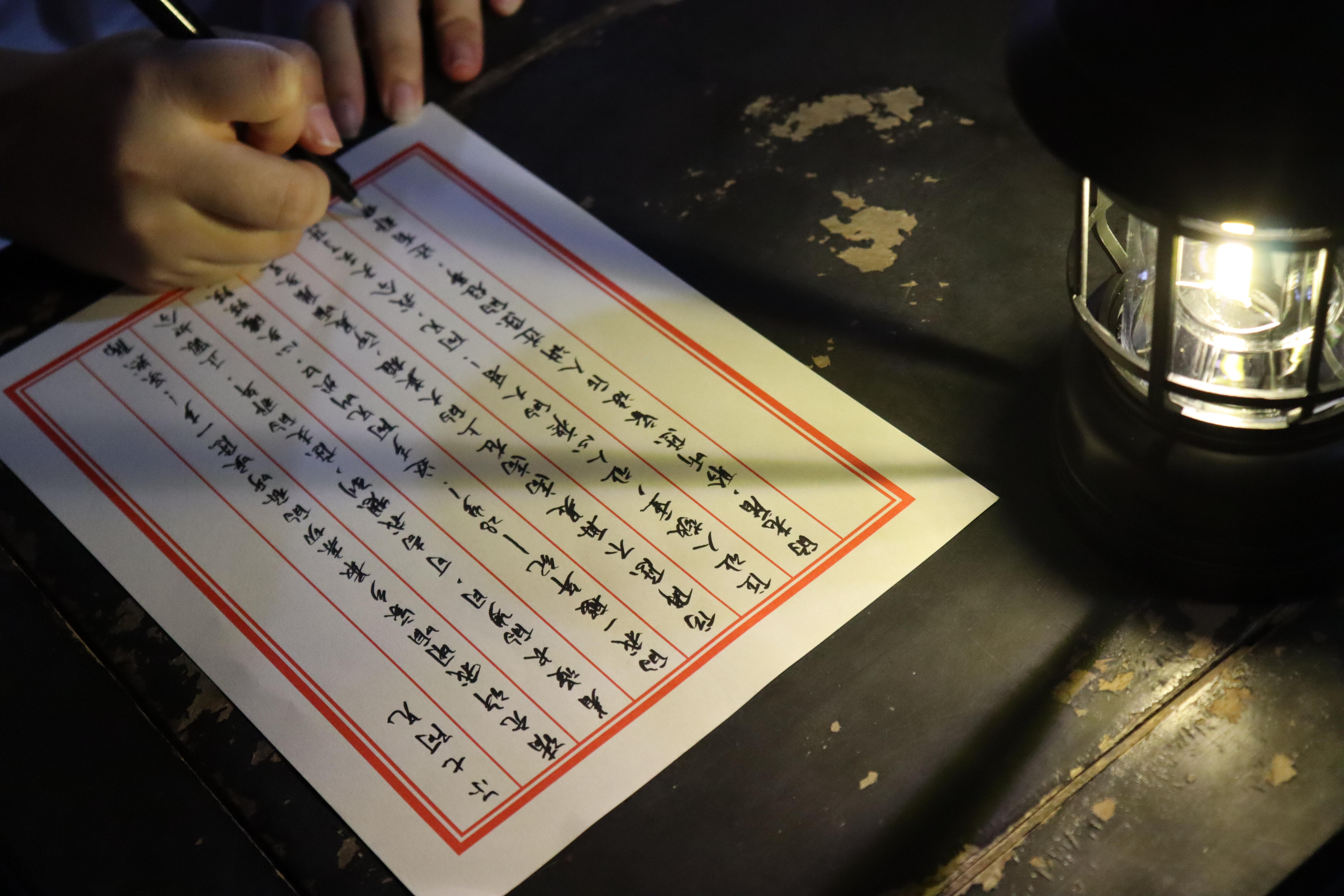 图为实践队成员撰写“跨越时空的回信”之《写给沈尔七烈士的一封信》