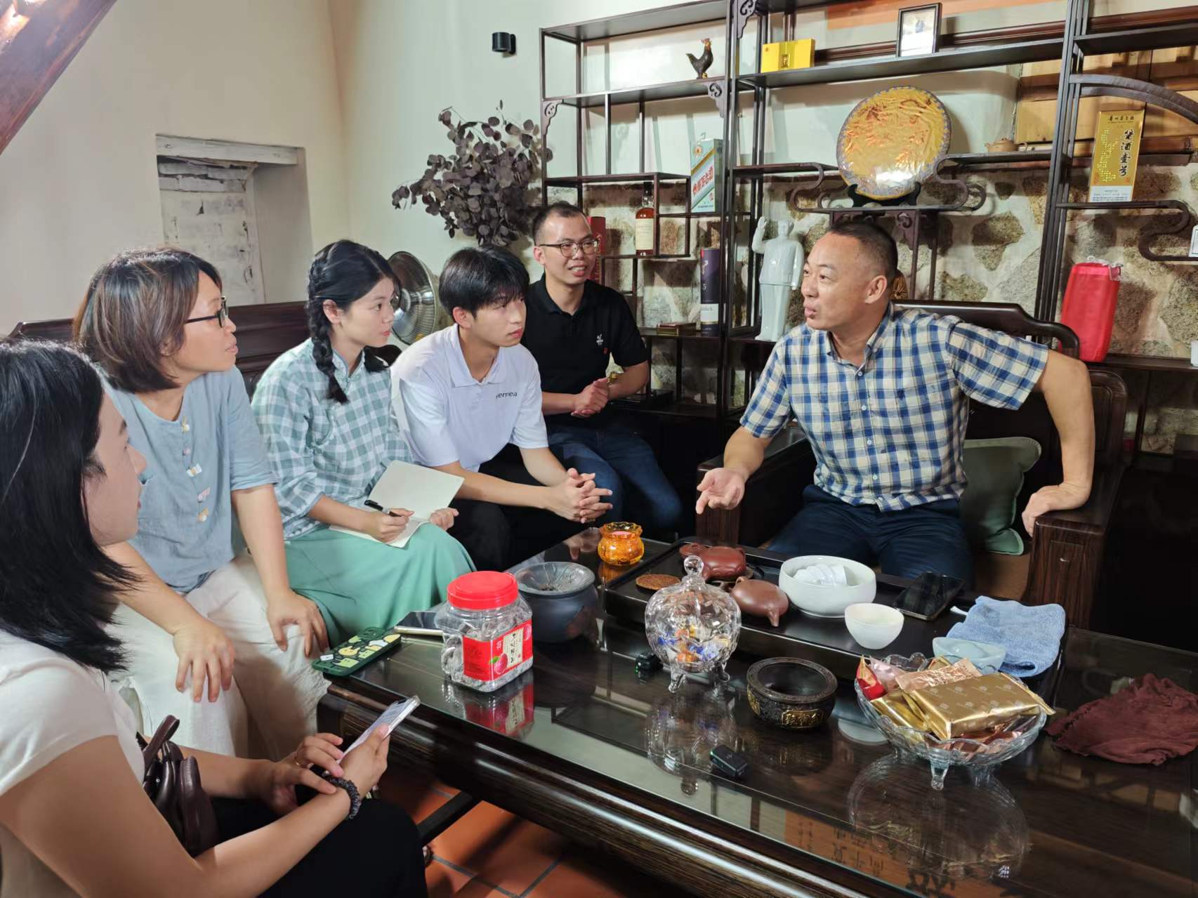 图为实践队访谈华侨将领林谋盛家族后人林晓俊