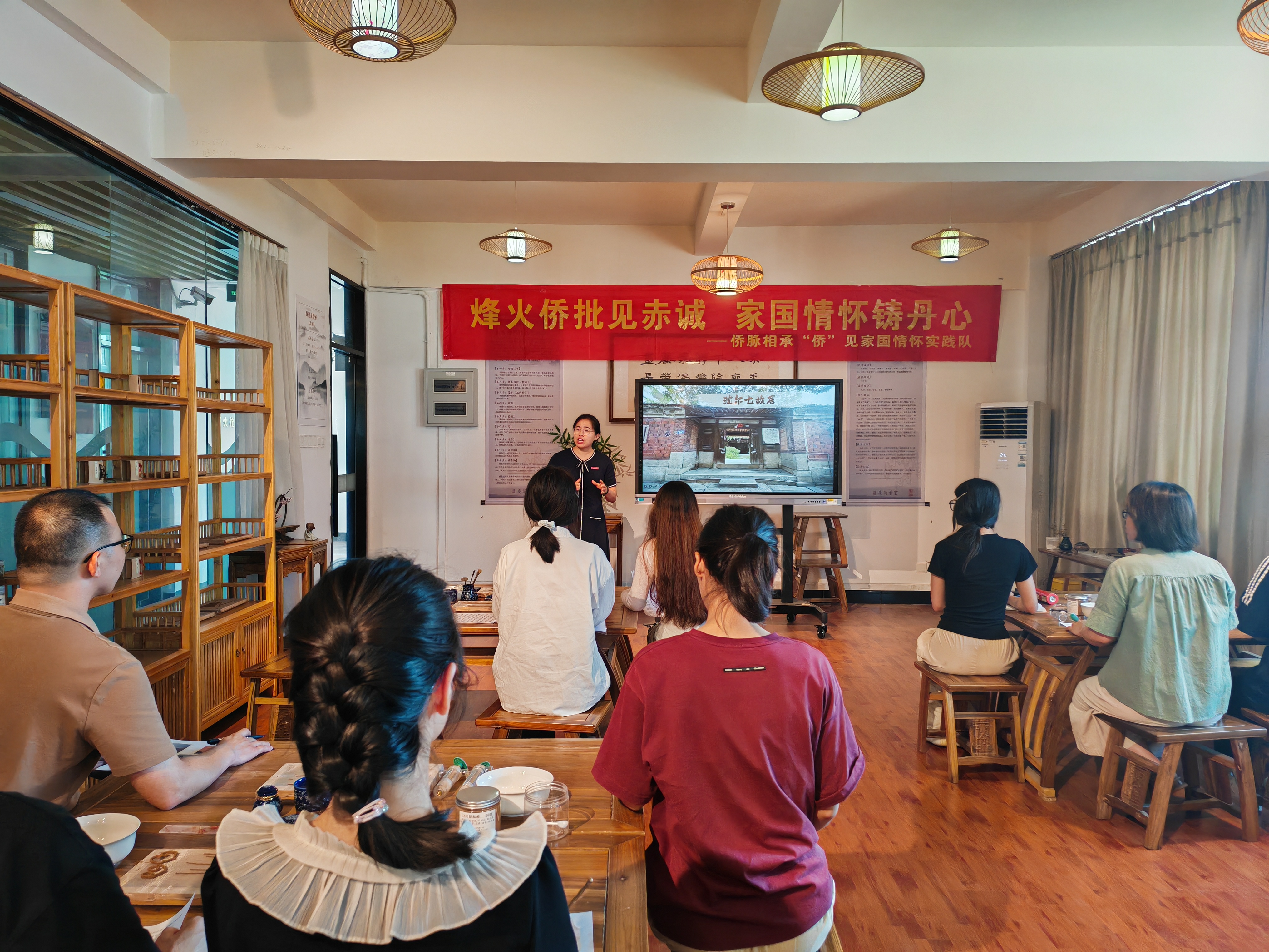借助社会大课堂让思政课活起来、实起来、强起来,是近年来全国高校推进思政课改革创新发展的重要内容。实践队在前期理论学习的基础上,通过参观展馆、人物访谈、主题观影等沉浸式方式走进历史,汲取精神力量。一是实地探访寻迹。队员们实地参观了泉州华侨革命历史博物馆“侨批中的抗战印记”档案文献展、泉州华侨革命历史专题陈列、华侨将军叶飞专题陈列、叶飞将军故居以及晋江博物馆“海天万里故园情——晋江华侨华人历史展”;深入探寻了闽南侨村梧林传统村落中“最美烂尾楼”朝东楼、“枪楼”;走访了华侨英烈沈尔七故居及南安林路古厝。通过亲临其境,触摸历史,队员们深化了对华侨爱国义举的认知。二是对话华侨英烈后人。实践队专访了抗战名侨沈尔七后人沈意跃、华侨将领林谋盛家族后人林晓俊。聆听英烈后人讲述先辈放弃海外相对优渥生活、毅然回国抗战、最终为国捐躯的英勇事迹,队员们深受感动,为之震撼。三是观看沉浸式情景剧。观看以世界记忆遗产“侨批”为脉络的主题融合剧《侨批往事》,队员们沉浸于荡气回肠的华侨家国史诗,经历了一场直击灵魂的视听盛宴与跨越时空的文化对话。