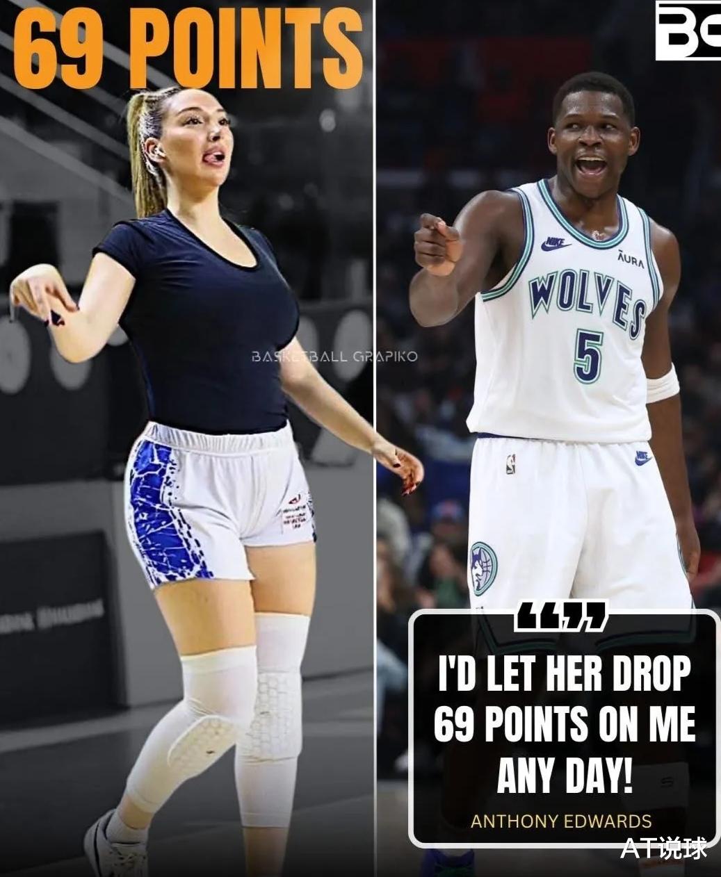 除此之外,厄格特和中国女篮运动员李梦在妆容和面相上还特别神似,两个人的位置和打法也很相像,甚至有球迷将她称为土耳其李梦。厄格特凭借着69分的表现火爆了篮球圈,NBA森林狼队的当家球星爱德华兹被她彻底吸引,甚至在社交媒体上疯狂示爱,发推表示愿意让厄格特每天在他身上得69分,想表达的言外之意自然是醉翁之意不在酒。