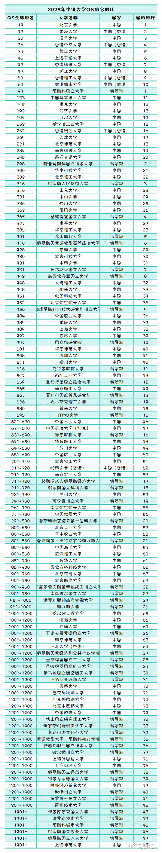 下图是2025中国与俄罗斯大学QS世界排名对比,大家可以看看自己意向的大学排名情况。