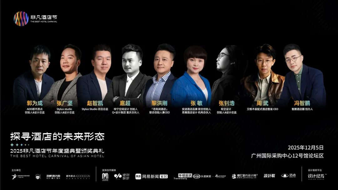 2025非凡酒店节(2025 THE BEST HOTEL CARNIVAL)由广州设计周、智鹏酒店圈及ADD都市原点酒店设计机构联合发起,是酒店业年度盛会。