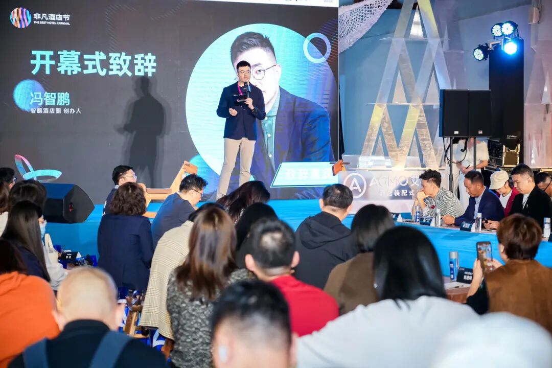冯智鹏先生发表欢迎致辞,本次盛典以“连接与分享”为初心,再度汇聚酒店设计师、投资人及运营方,共筑行业交流平台。本届通过实地探访与严谨评审,评选出年度20家杰出酒店,并呈现精彩的设计分享与圆桌论坛。感谢每一位到场同仁的参与,期待持续共创酒店行业的非凡未来。