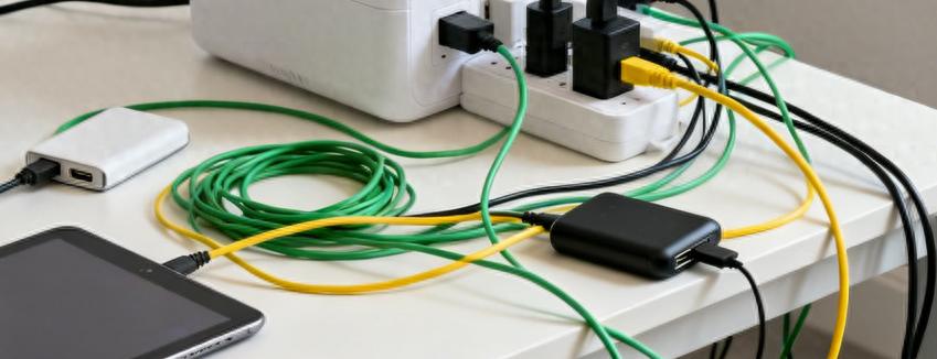 USB口的加入更是“理线神器”。平时给手机、平板、无线耳机充电,再也不用额外带充电头了,直接用数据线连接就能充。1个USB-A口适配旧款设备,2个USB-C口则满足了新款手机、平板的快充需求,接口类型覆盖全面,不用再到处找转接头。这种“AC+USB”一体化的设计,极大减少了桌面充电头的数量,线材瞬间少了一半。