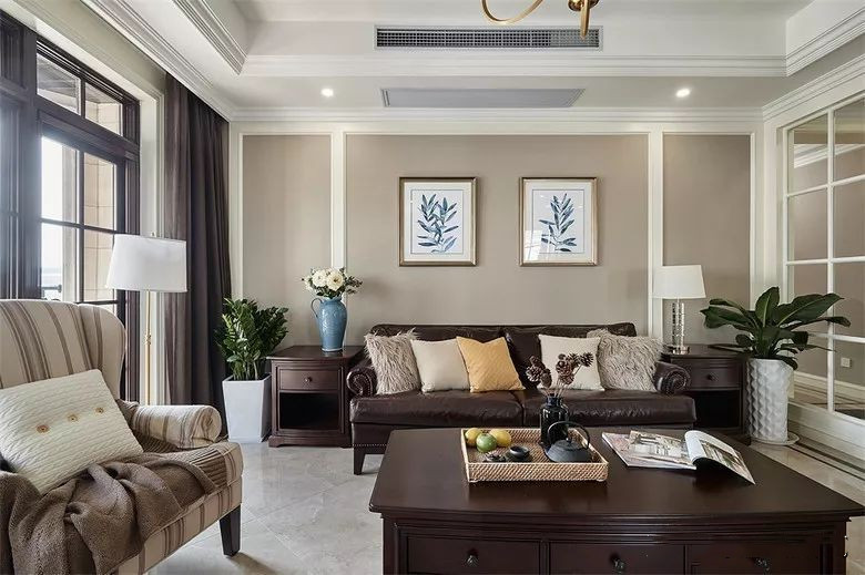 实木的家具以及整个美式风暖色的设计搭配起来,简约而又大气,而且美式风和现代风的搭配一点都不会过时老旧,反而更有古典的气息。
