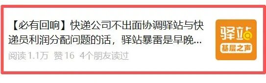 “快递公司不出面协调驿站与快递员利润分配问题的话,驿站爆雷是早晚的事。”