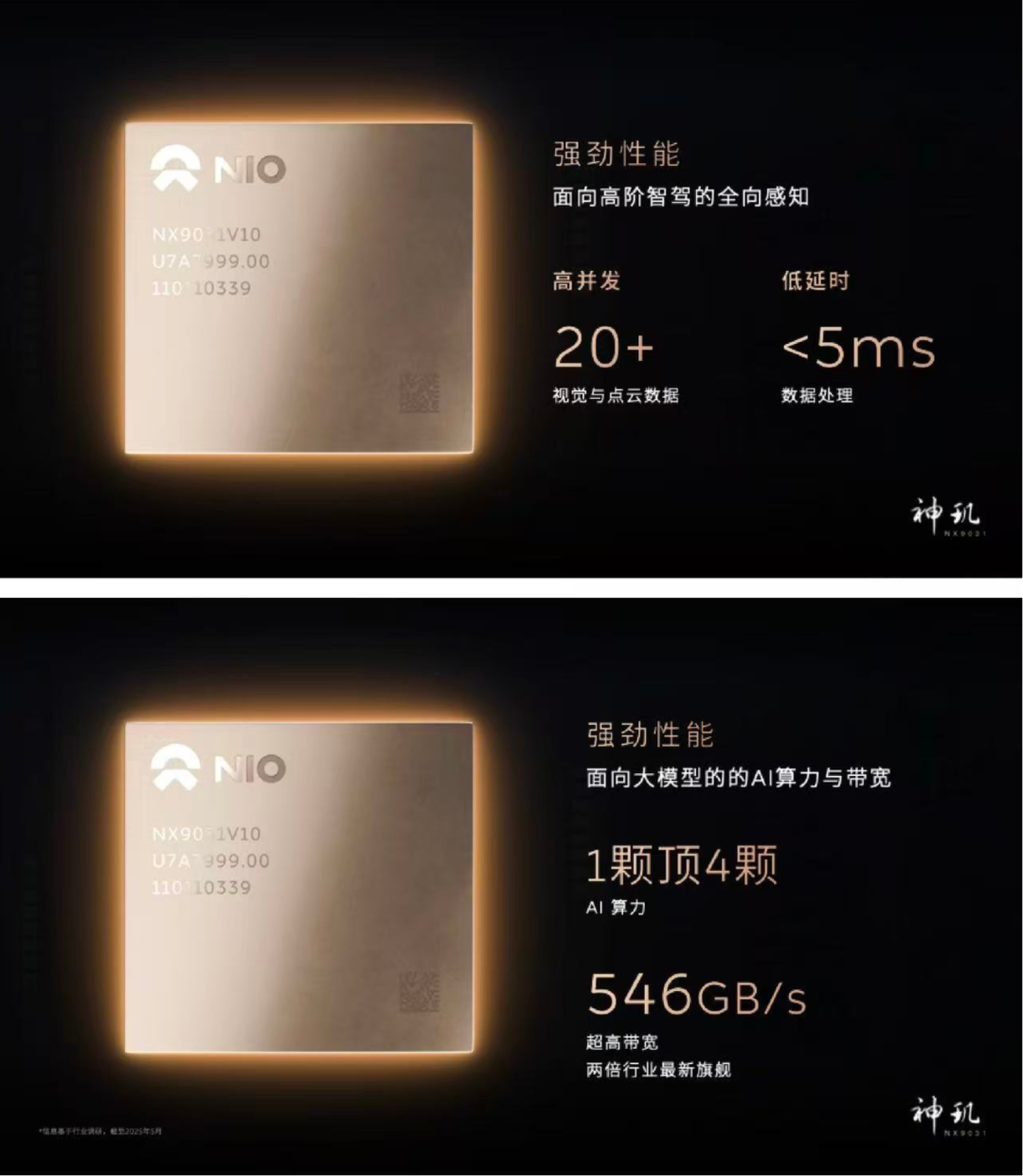 蔚来ES9最硬核的地方,是它那颗完全自研的“大脑”。这颗叫神玑NX9031的芯片,是全球首款量产的5nm车规级智驾芯片,单颗算力就已经超过1000TOPS,相当于四颗英伟达Orin-X的总和。