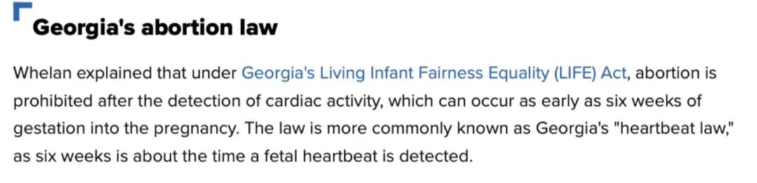 因为佐治亚州几乎完全禁止堕胎,相关规定也被称之为“心跳法则”: