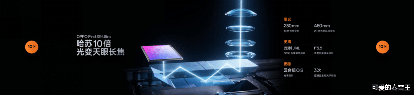 Find X9 Ultra 搭载哈苏 10 倍光变天眼长焦,实现行业首个 20 倍光学品质变焦。为此,OPPO 首创五反射潜望棱镜和全新空气光阑技术,五反射潜望棱镜让光线在内部实现五次反射转向,将棱镜长度缩减了近三分之一,空气光阑技术则通过在棱镜中加入空气层,利用玻璃与空气的介质差过滤杂光,进而得到纯净光线。两项创新技术的加持,真正实现了无需增距镜,远景依然触手可及。