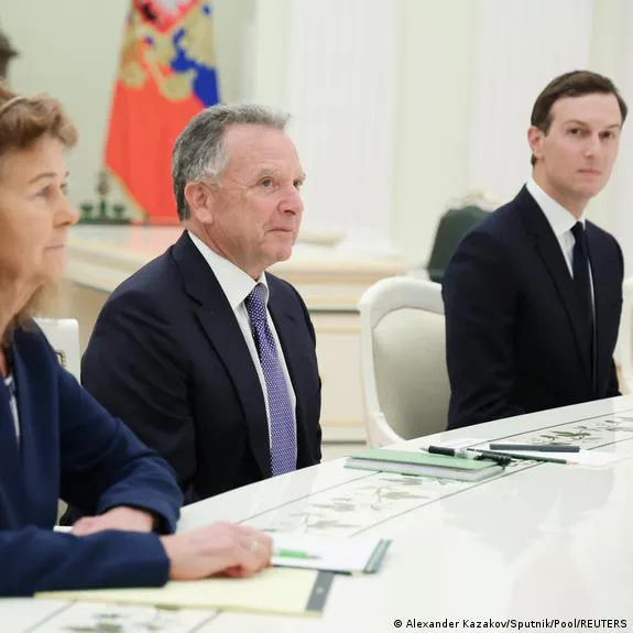 川普的地产盟友史蒂夫·维特科夫川普的女婿库什纳对面则坐着:
