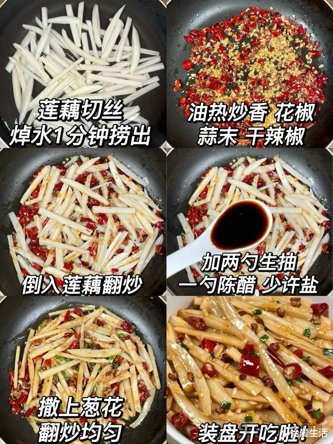 6. 炒至藕丝断生、保持脆爽即可出锅。