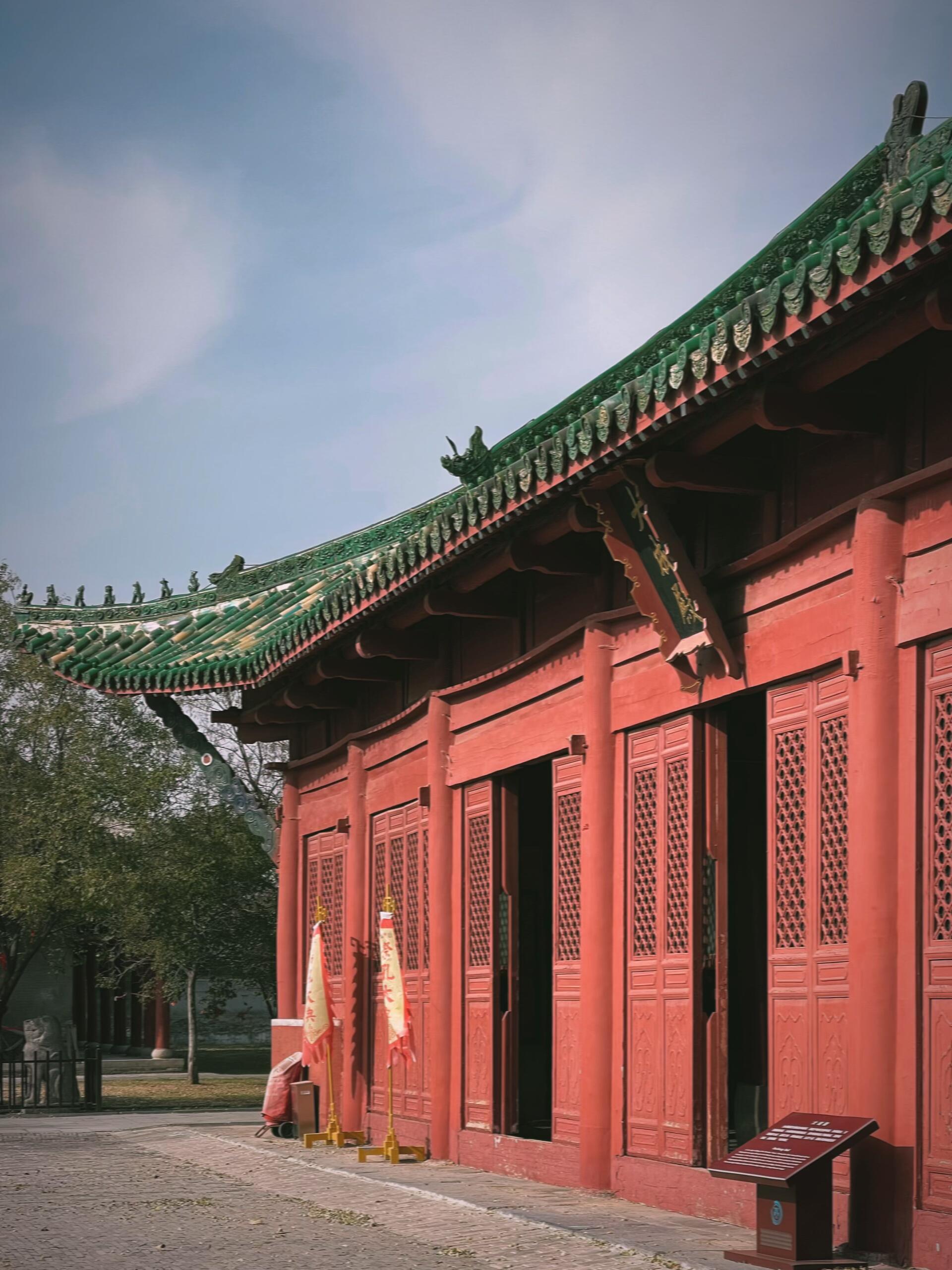 走近归德府文庙,首先映入眼帘的便是那抹醒目的红墙琉璃绿瓦,在古城灰瓦白墙的映衬下,显得格外庄重典雅。这份色彩的搭配,并非随意为之,而是蕴含着儒家文化的审美情趣与等级秩序——红色象征着尊贵与庄重,绿色则代表着生机与活力,琉璃瓦的流光溢彩则为这座文庙增添了几分神圣之气。穿过棂星门(今虽为现代复建,但仍保留古制),脚下的石板路被岁月磨得光滑,仿佛每一步都能踏响历史的回声,引领着人们走进那个尊崇儒学、文风昌盛的年代。