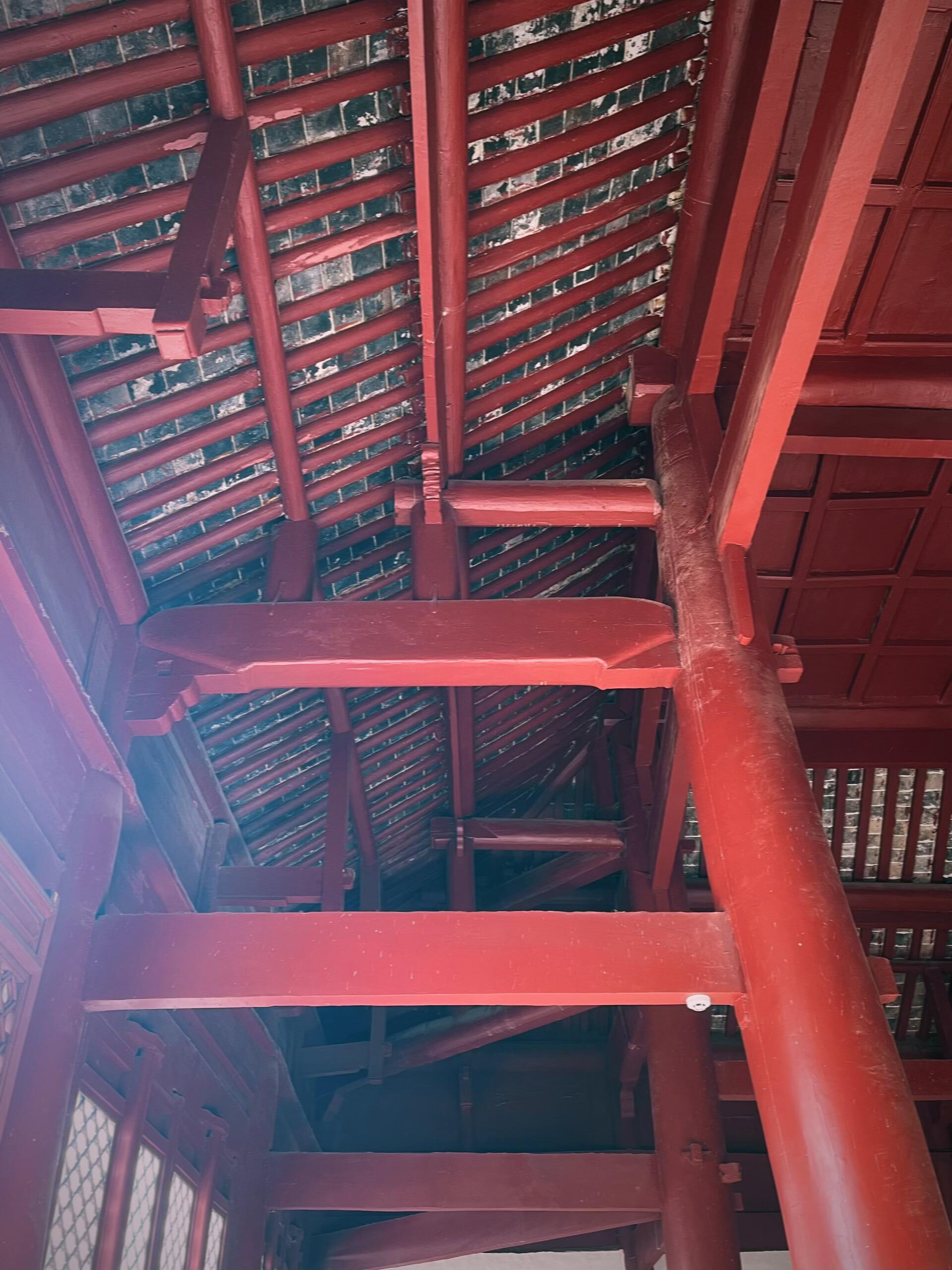 最令人称奇的是大成殿的建筑结构,房顶由32根胸围1米的明柱擎起,这些粗壮的立柱如同一个个顶天立地的巨人,稳稳地支撑着整个殿宇,历经数百年而不倾颓。更特别的是,殿宇檐下无斗拱,四周平出耍头承托檐部,这种独特的建筑手法在中原古建筑中并不多见,既简化了建筑结构,又不失庄重与稳固,展现出明代工匠高超的营造技艺与创新精神。很难想象,在没有现代化起重设备的明代,工匠们是如何将这些巨大的木柱运送到施工现场,又是如何精准地搭建起这座宏伟的殿宇。每一根立柱的选材、每一处榫卯的衔接,都凝聚着工匠们的智慧与汗水,也彰显着古代中国建筑技艺的辉煌。