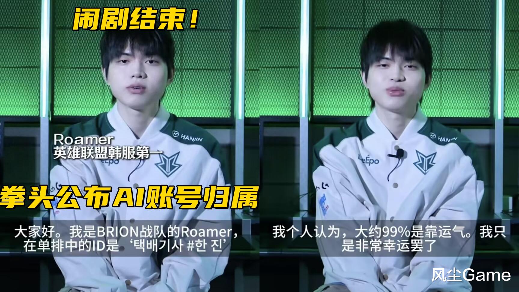 Roamer接受设计师团队采访,在自我介绍的时候,他带上了自己的ID,跟之前网传的AI账号ID一致,拳头标题里,也附带了玩家评价:细腻操作宛如AI,因此这事儿的讨论,可以告一段落了,同时Roamer也在采访里表示:自己能打出92%的胜率,并且登顶韩服,只是非常的幸运罢了。