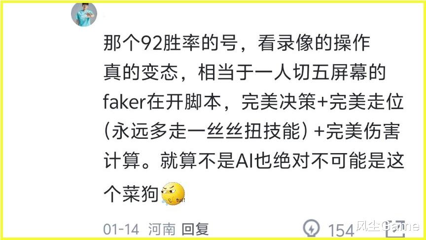 有了拳头官方设计师的认证,这波AI闹剧算是结束了,Rank打得好,不一定比赛就能有发挥,这已经是经过无数次验证的,汤圆登顶过韩服,但比赛打得啥样,大家心里都有数,TT的小黄人,也曾经登顶过,但现在已经查无此人了,所以真不能尬吹,容易被打脸啊。