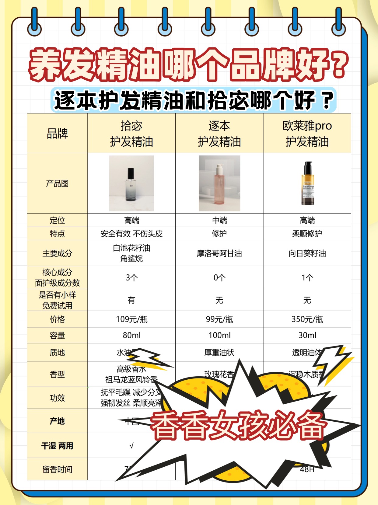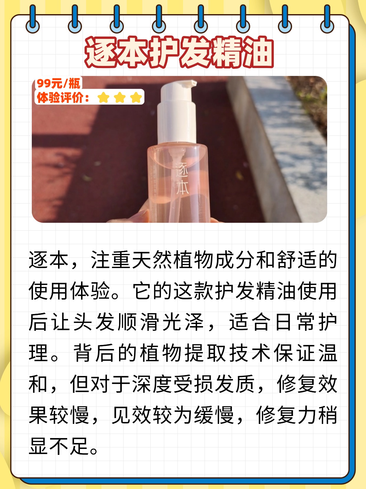 经常有人问我逐本和且初这两款怎么选,其实选之前得先搞懂核心问题:护发精油到底有用吗?是不是智商税?说真的肯定有用!头发最外层的毛鳞片受损后就会毛躁分叉,精油里的油脂成分能填补这些空隙,还能在表面形成保护膜,减少摩擦和高温伤害。但要注意不是所有精油都适合自己,比如有的质地厚重,油头用了更油腻;有的吸收慢,涂完手都粘糊糊的。另外还有人问精油是涂发根还是发尾?答案必须是发尾和发中!发根靠近头皮本身会分泌油脂,涂了反而容易闷得慌,尤其是油头姐妹千万别碰发根。我测评过不少平价款,发现效果好坏和价格不一定挂钩,关键看质地和成分是否适配自己的发质。接下来分享我选购平价护发精油时的避坑经验,全是实测出来的干货,建议先赞藏慢慢看。