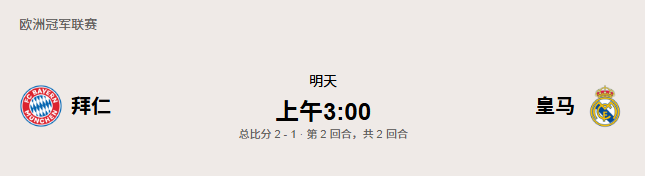 预测:拜仁2-0穿盘 或 皇马2-1客胜