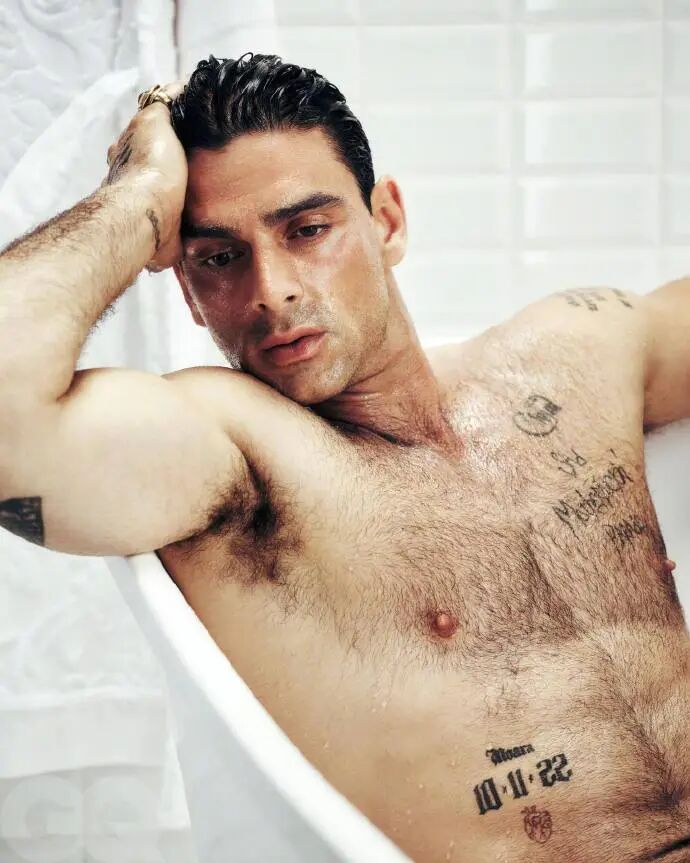 :胸口、臂弯的纹身不是 “刻意的狠标签”,顺着臂骨、胸骨的线条铺,和他的熟男骨相融成一体;裸身的肌棱不是 “炫肉的堆”,反是 “骨的狠” 让纹身的野有了 “大佬的沉”。金句:“大佬风的高级从不是装出来的狠,是奢装贴着你的骨熟,纹身衬着你的魂沉 ——Michele 这波,是把《365 日》的狠穿成了自己骨相里的奢”。