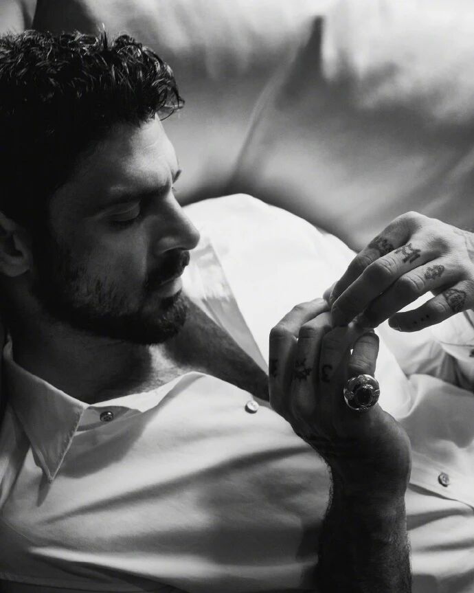 谁再说 “大佬风 = 堆黑装的硬狠”?看 Michele 这波瑞士版 Schön! 封面 —— 印花衬衫的垂褶刚好贴住他的肩峰棱,把 “奢的柔” 裹成 “骨相里的狠”;浴袍的松边卡着颈骨的锐,让 “熟的懒” 衬着 “魂里的野”;连纹身的肌理都像 “骨相外的大佬标签”,不是 “装黑帮”,是他把《365 日》里的熟狠,缝进了奢装的针脚、影调的冷里,把 “大佬风格” 从标签化硬狠,拽成 “骨相、奢装与角色魂共振的呼吸感”。