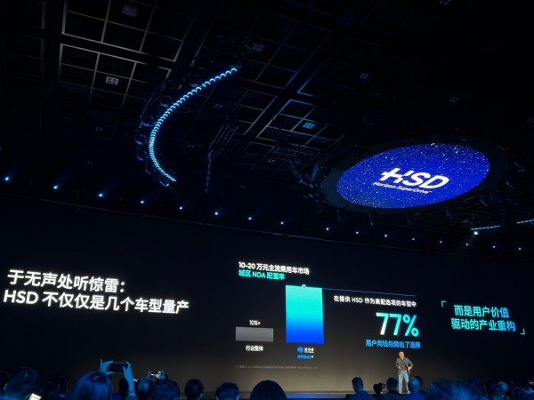 而现在,在一些把HSD作为高配选项的车型里,77%用户选择了高配——“这意味着大部分用户已经愿意用钱包为智驾体验付费”。iCAR品牌事业部总经理苏峻也上台给了一个更具体的数据:iCAR V27上市后,将近60%的用户主动选择了搭载HSD超级猎鹰700的顶配版本(V27的顶配价格接近20万元,这个选择比例在该价位段并不低)。