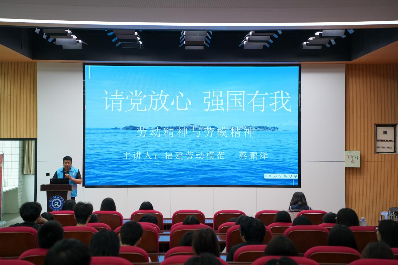 为大力弘扬劳模精神和工匠精神,让全体师生深入了解工匠精神的内涵,鼓励师生刻苦钻研,追求卓越,点亮“匠心梦”,文化传播学院在瑞基406举办“劳模工匠进校园”活动。本次邀请到福建省劳动模范蔡鹏泽为师生带来“请党放心 强国有我”主题讲座,与师生们面对面交流,分享他的奋斗故事与匠心感悟。