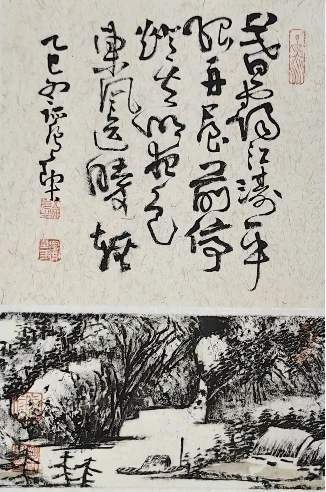 诗书画印是中国传统书画四大法宝,衡量一个书画家的艺术内核高低离不开这四个元素,无论技法,画理,美学等方面,陶古先生都是有高度的,在他的焦墨山水作品里,你还能品味到文学性,诗性,陶古先生的诗词都是自己创作的古体诗,很多诗句耐人寻味,既有打油诗的生活气,又有高拔洒脱的文人气,诗有诗眼,画有画眼,题画诗不仅诠释了绘画的内涵,也起到画龙点睛的作用,让作品顿时生龙活虎,不得不说,陶古是一个素养比较全面,有一颗文心的艺术家。