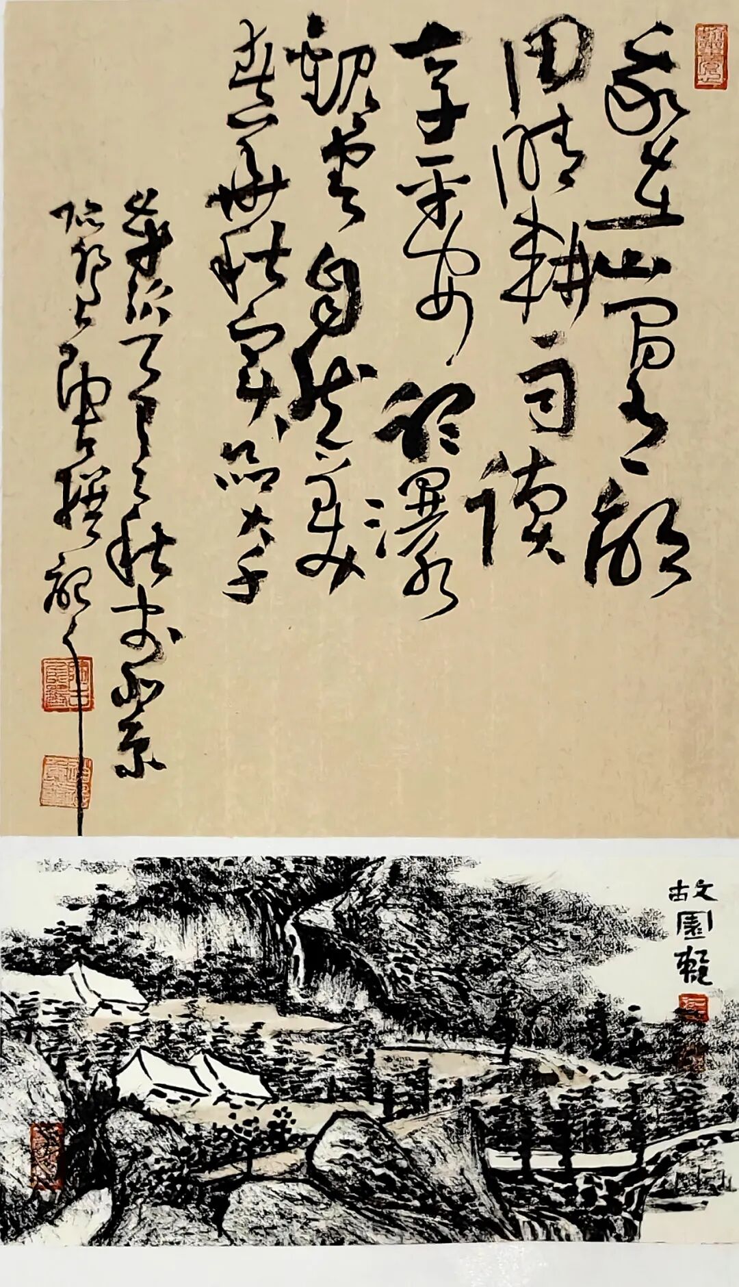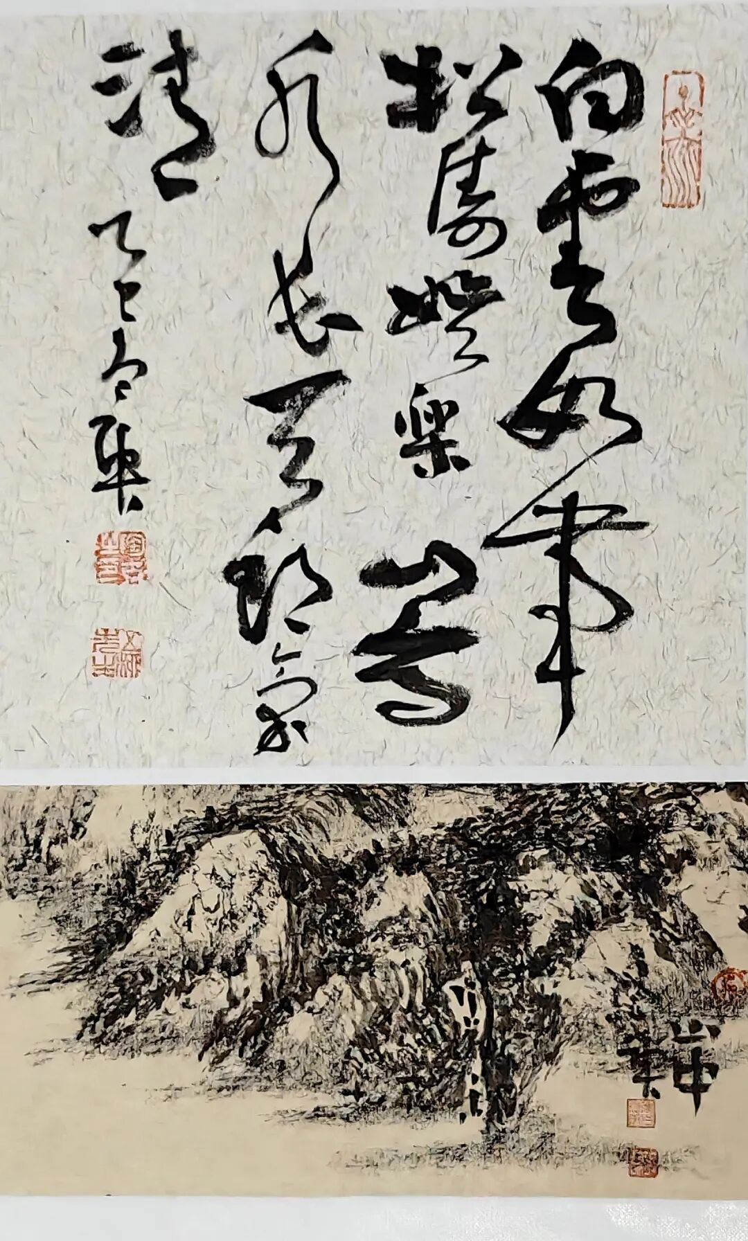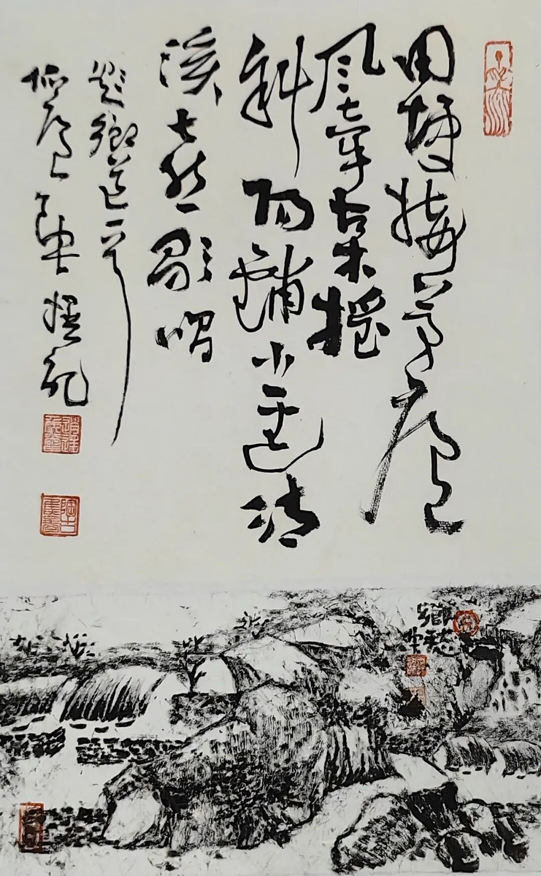 陶古的焦墨和张仃的焦墨又不太一样,陶古的书法尤其是行草书,有它自己独特性,大家老讲以书入画,很多画家都挂在口头上,作品中看不到书法,书法入画谈何容易呀!多数都是自己给自己脸上贴金,自称以书入画,而陶古确确实实是以书入画。