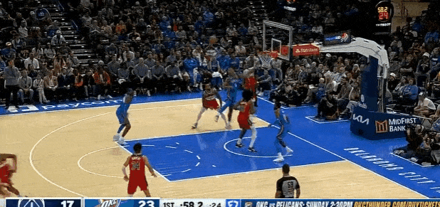 第一节比赛,以赛亚-乔接亚历山大助攻三分命中,雷霆首节领先8分。