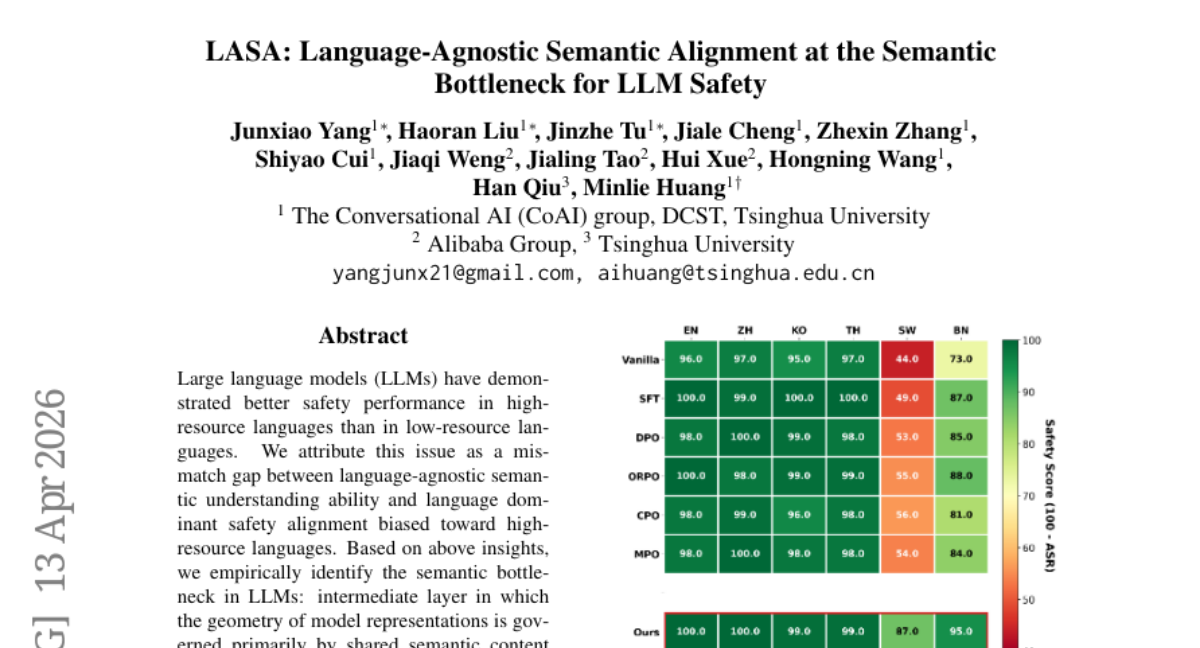 清华团队提出的方案叫做**LASA**,全称是"语言无关语义对齐"(Language-Agnostic Semantic Alignment)。这套方案的核心逻辑,就是找到语义瓶颈层,然后在那里直接训练AI的安全判断能力。