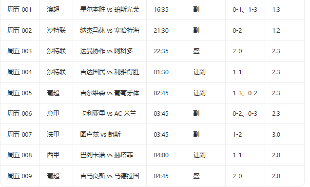 周五004 (沙特联) 吉达国民 vs 利雅得胜 时间:01:30老朱掰扯掰扯:吉达国民有菲尔米诺、马赫雷斯这些大牌,进攻确实好看,但防守一直不稳,尤其怕高强度冲击和快速反击。利雅得胜这边,C罗的状态就是晴雨表,老爷子最近脚感火热,求胜欲爆棚,就是要在直接对话中确立优势。他们的中场绞杀能力和转换速度,恰恰是吉达国民最怕的。老朱觉得,吉达国民主场或许能靠球星灵光一现进一个,但想挡住利雅得胜持续不断的攻势,几乎不可能。看好领头羊客场拿下关键战。