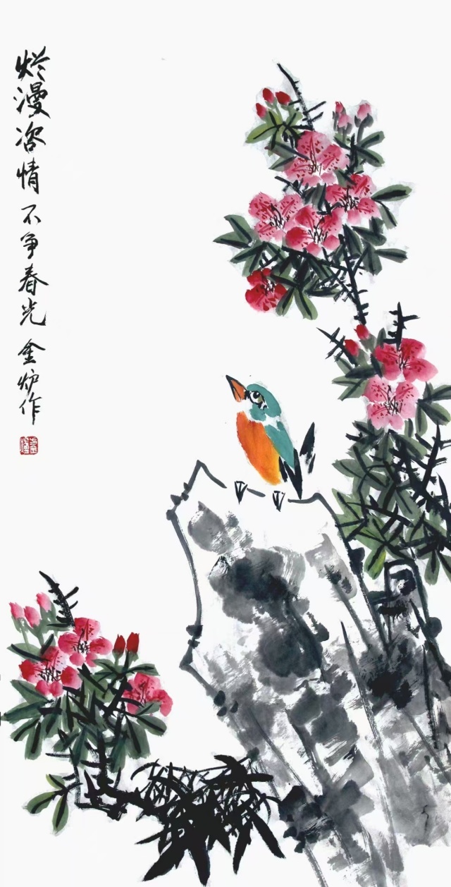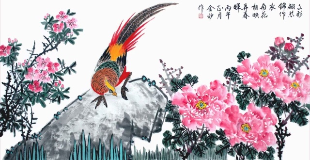 Proficient in flower and bird painting as well as landscape painting, with exquisite brushstrokes and delicate strokes that create a spring like sensation. It is full of vitality and is unique to others, possessing both form and spirit. Its visual impact surpasses that of its predecessors, creating new ideas in its techniques and conveying profound principles beyond its boldness. The work boldly innovates on the basis of inheriting tradition, with a profound cultural heritage and a strong sense of the times. The taste of picture quality and artistic charm is rooted in high antiquity and continues to contribute to culture. It is authentic, righteous, and displays the grandeur and style of a great country. Deeply loved by people both domestically and internationally, and attracting attention from both domestic and foreign media, it has received praise from art historians and has had a significant impact both domestically and internationally.