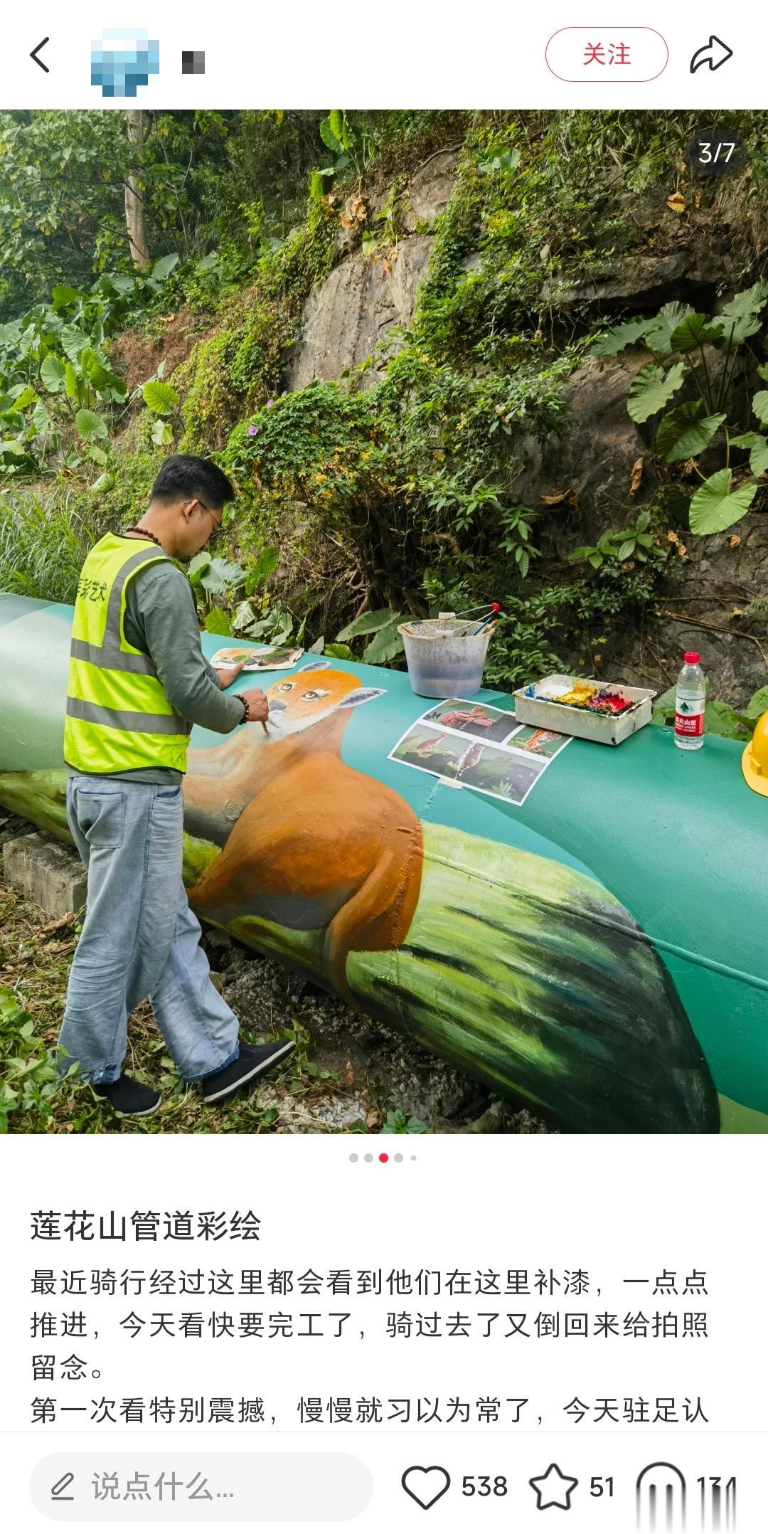 据悉,福田区城管局在去年日常巡查中发现,管道彩绘陆续出现了零星锈蚀与脱落。今年10月底,为期一个月的局部修补如期动工——这也正是市民在社交媒体上记录下的那一幕。