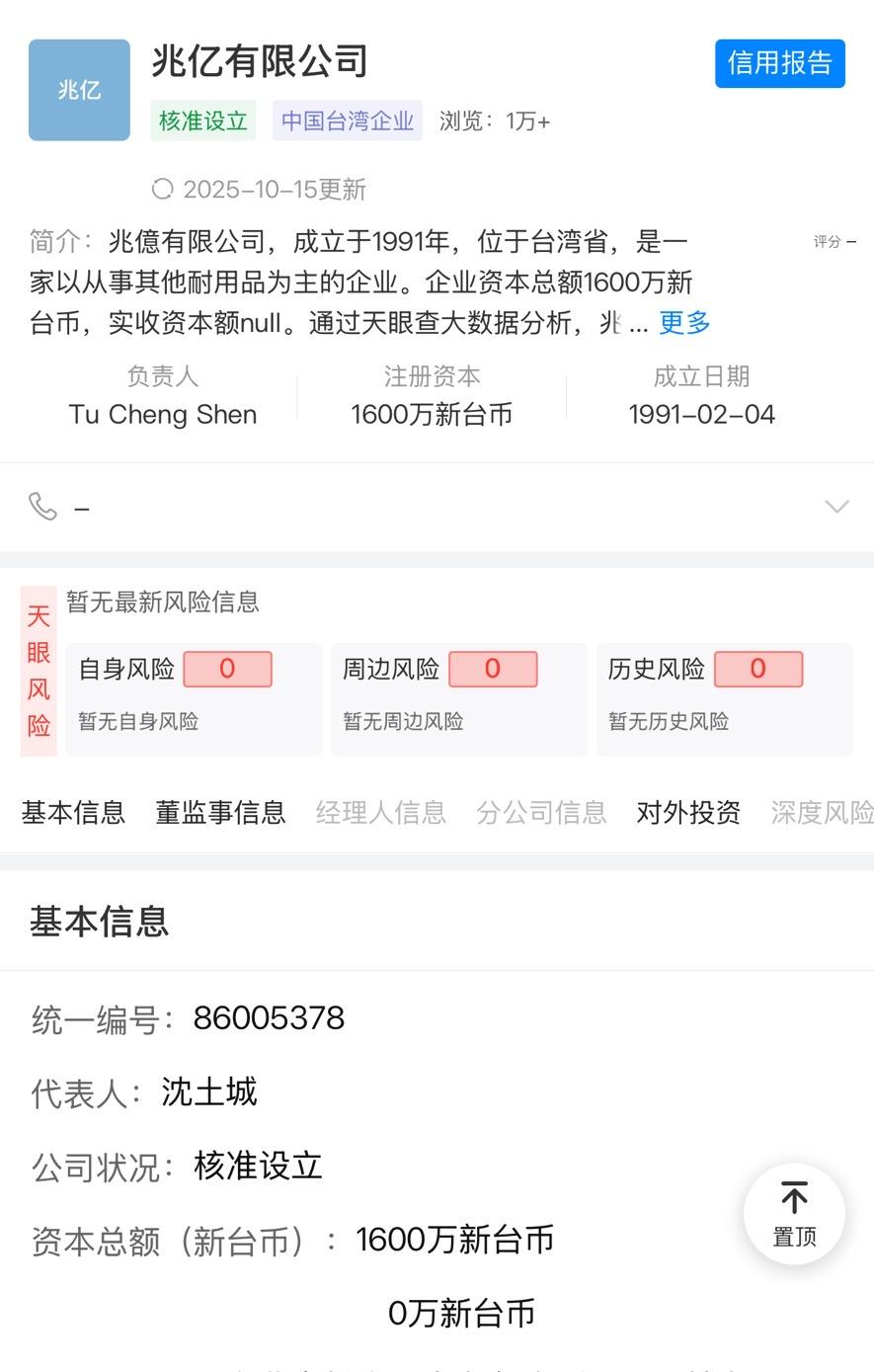 在网上,我们仍然能够查到沈土城以台商身份创立的「兆亿有限公司」。这家公司主要是做“倒哥”生意,购买广东、浙江、福建三大核心地区的石材、建材、服装、电子元件等原材料,销售至南美市场获利。