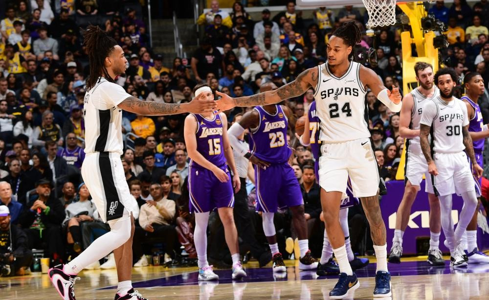 没有文班亚马的马刺并没有如大家预期般的溃不成军,赢下此役之后他们的战绩和湖人并列西部第四,卡斯尔登场27分就14投10中砍下30分10篮板6助攻,全队7人得分上双展现了这支球队的团体性。尽管没有超巨,马刺依旧被称为死亡之组的杯赛中脱颖而出,并在客场以132:119击败湖人进入西决,足以令人敬佩。