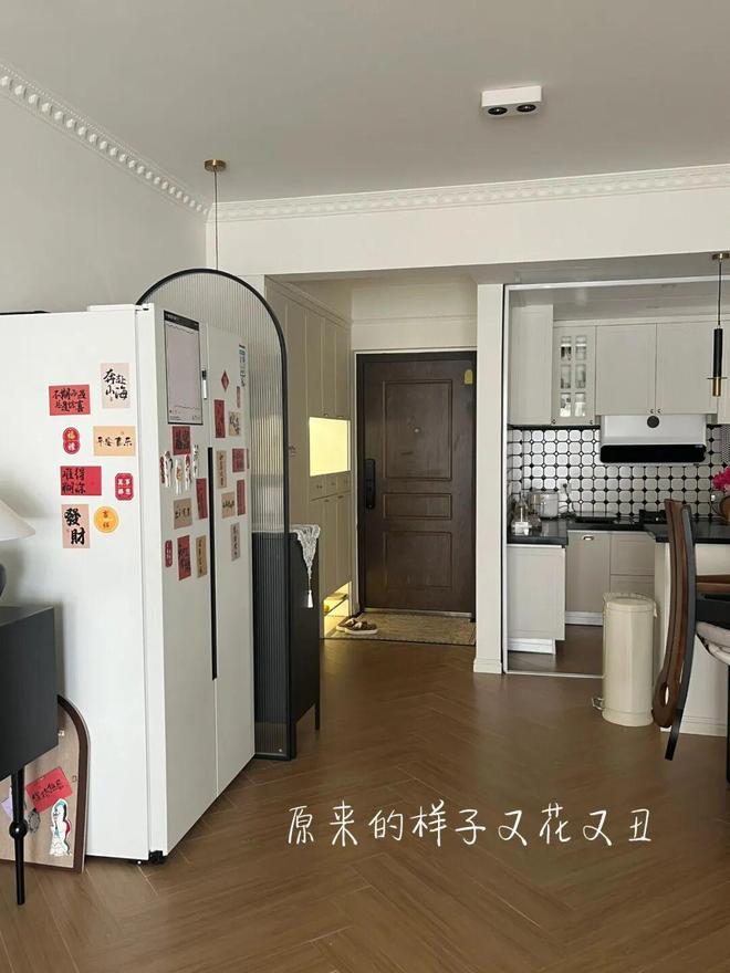 1、网友@云朵的家:由于不喜欢定制柜,玄关区就没有设计柜子了,不过这并不影响我收纳,更不会影响生活。